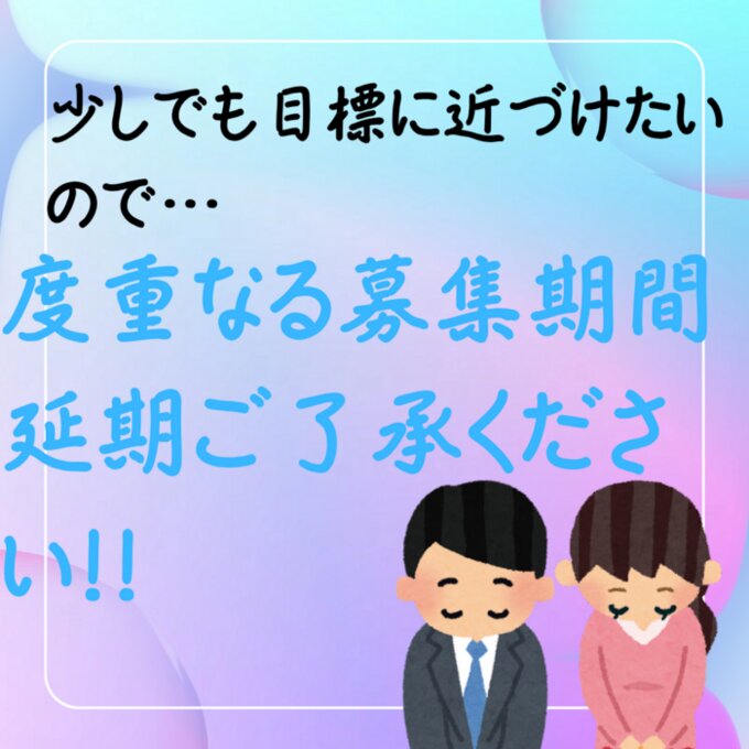 なかなか目標達成には至りませんので、募集期間を延期します。