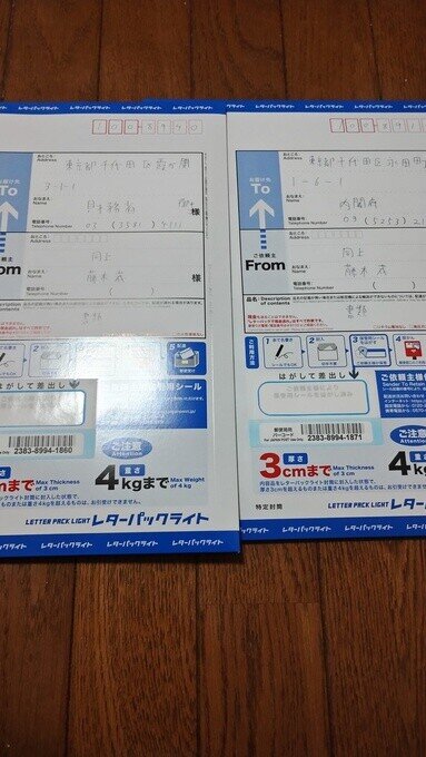 別の署名活動の消費税廃止の要望書も一緒に郵送してます。