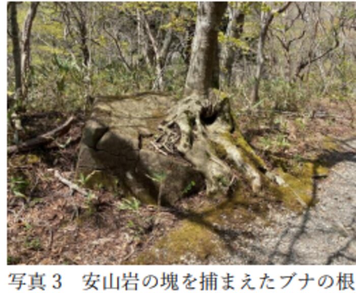 地質的には、奥羽山脈は溶結凝灰岩や安山岩など脆い岩石で形成されており、日本列島誕生期の激しい造山運動を反映した地形を持っています。ブナなどの広葉樹が岩盤の亀裂に根を張り、斜面や岩盤を安定化させている様子がよく見られ、脊梁山脈の破壊は災害リスクを増幅させるであろうことが良くわかります。